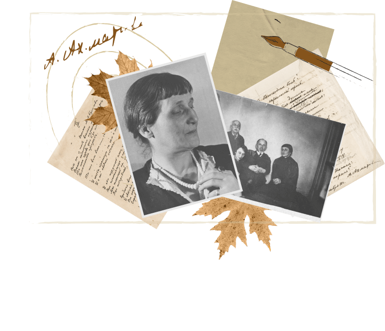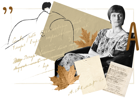 The collages were compiled from the autographs of Anna Akhmatova, Lev Gumilev and Joseph Brodsky, as well as drawings, pictures of the poets' manuscripts and the autumn leaves from Sheremetev’s orchard.