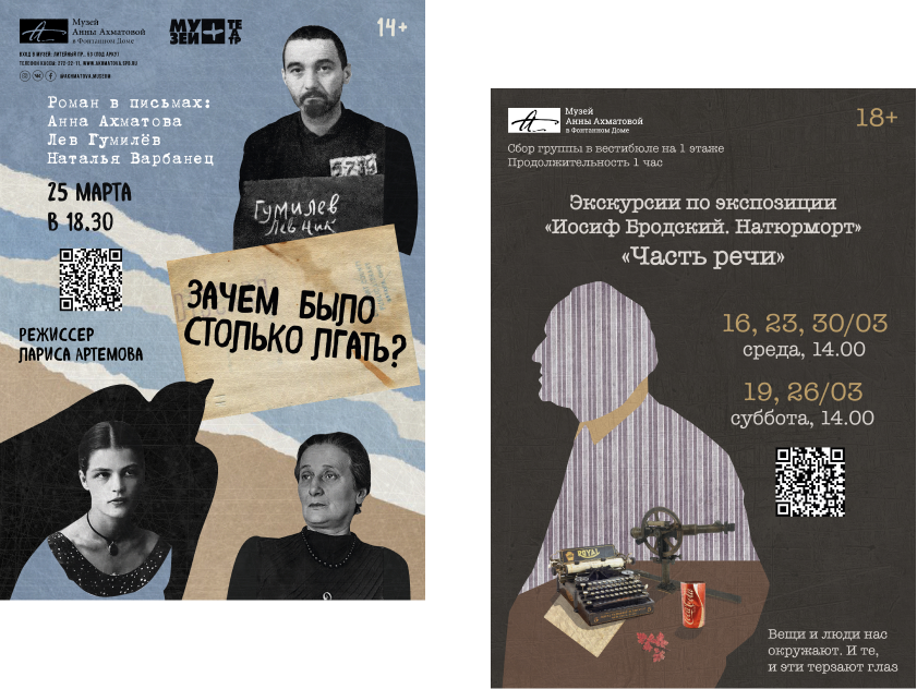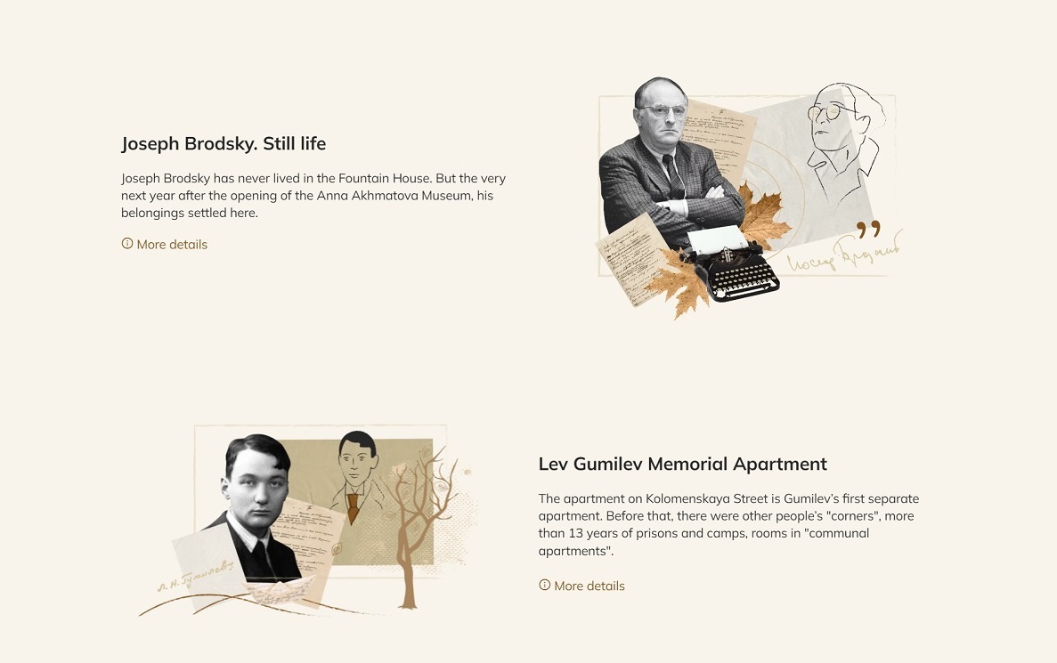 Collages became a key part of the design. Our designers created them in collaboration with the designers of the Anna Akhmatova museum.